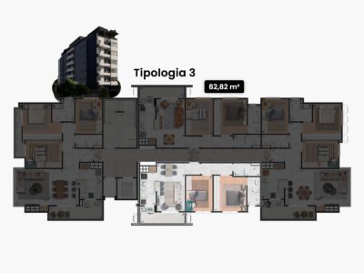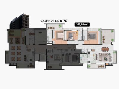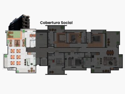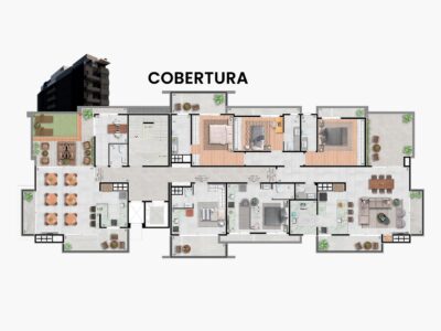 Cobertura com 3 suítes, lavabo, sala, cozinha, lavanderia e área de lazer privativa