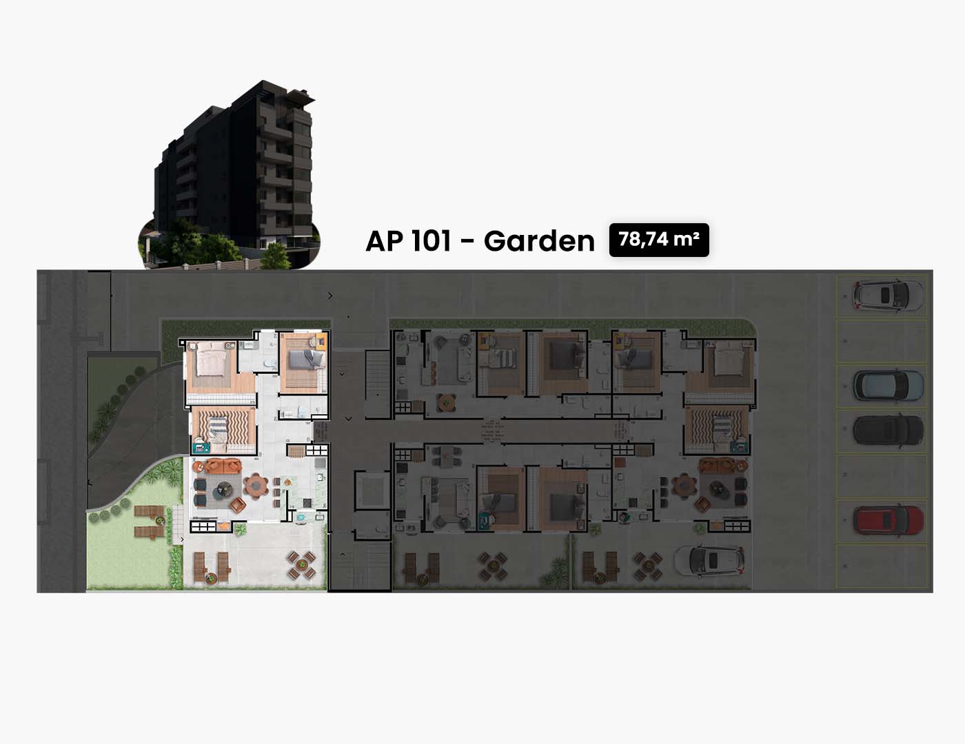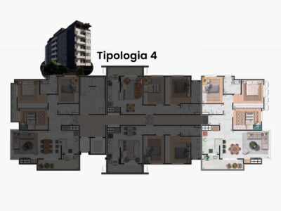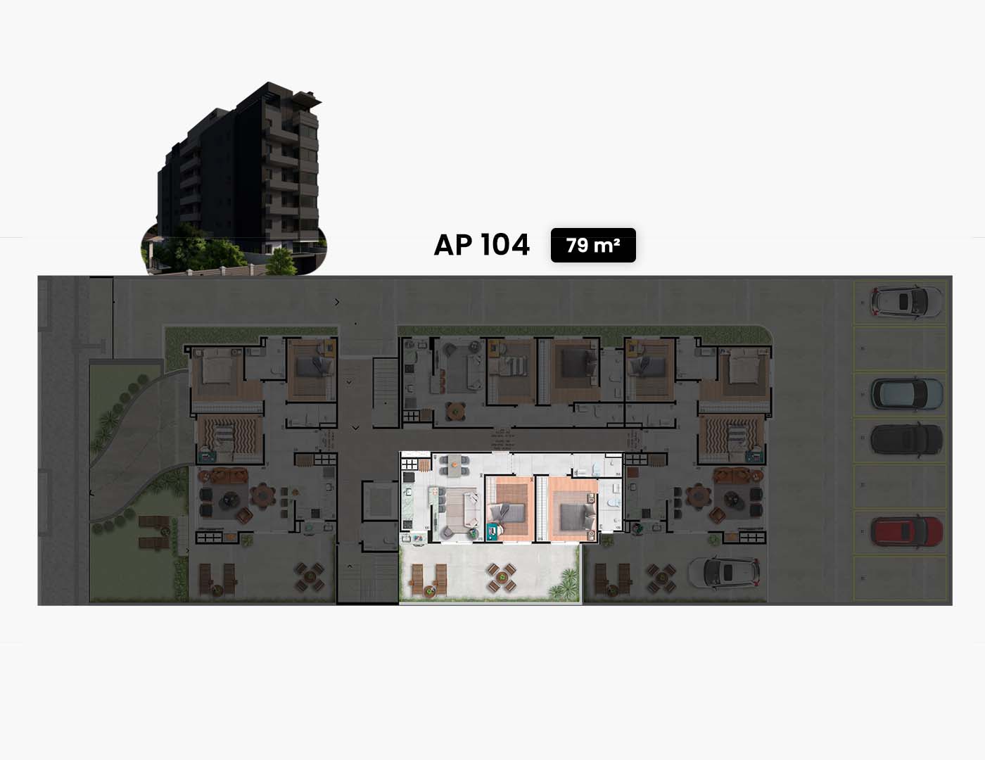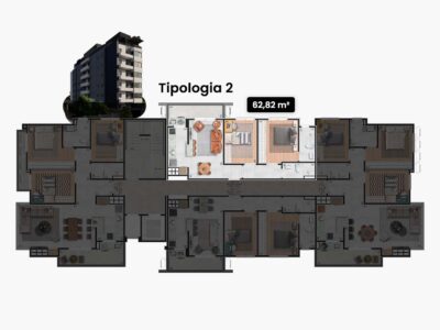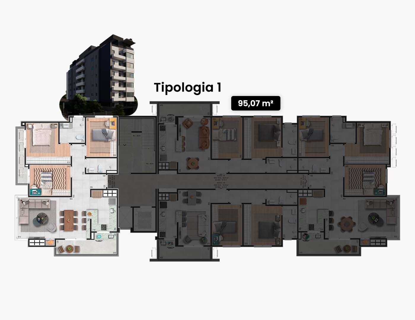 Apartamentos de 2 dormitórios sendo uma suíte, banheiro social, sala e cozinha integradas, churrasqueira e lavanderia. Posição norte e sul.